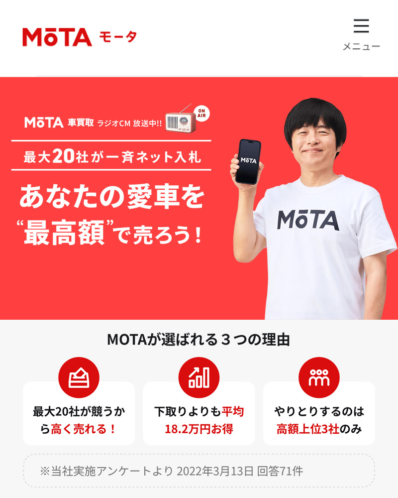 買取金額だけでなく取引のスムーズさも重要な要素となってきています。MOTA(モータ) 公式サイトへ