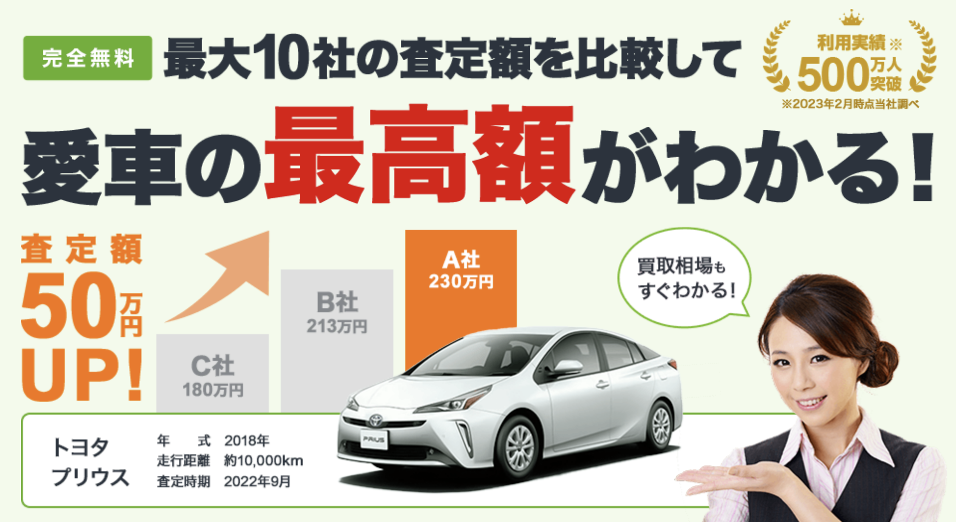 カービューについては、売買の実績も注目すべきポイント。累計500万人以上のユーザーがカービューを利用しています。買取実績が多ければ、流通コストが低減され、買取額の上乗せに充当されます。つまり、買取額がさらに高まることが期待できるのです。
