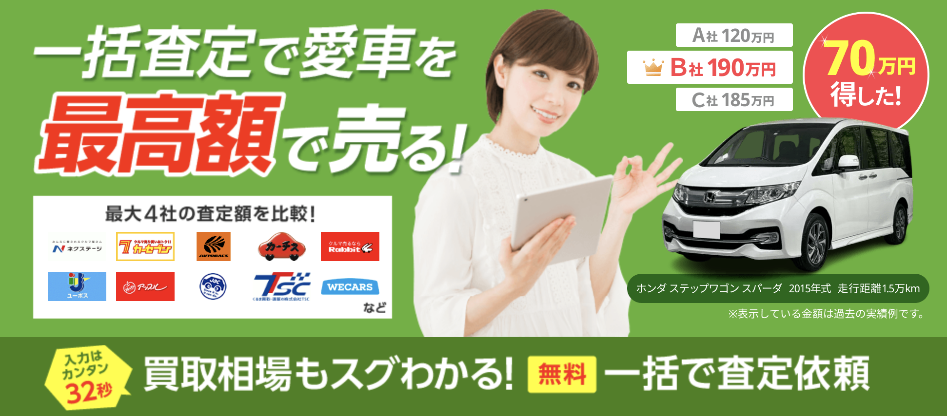 - 一括査定のオンライン申し込みは「所要時間32秒」をうたう簡単手続き。