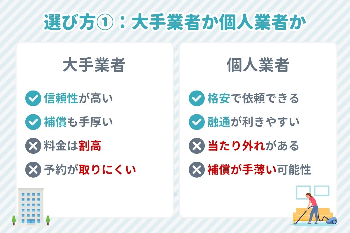 大手業者と個人業者、それぞれのメリット・デメリットを解説します。