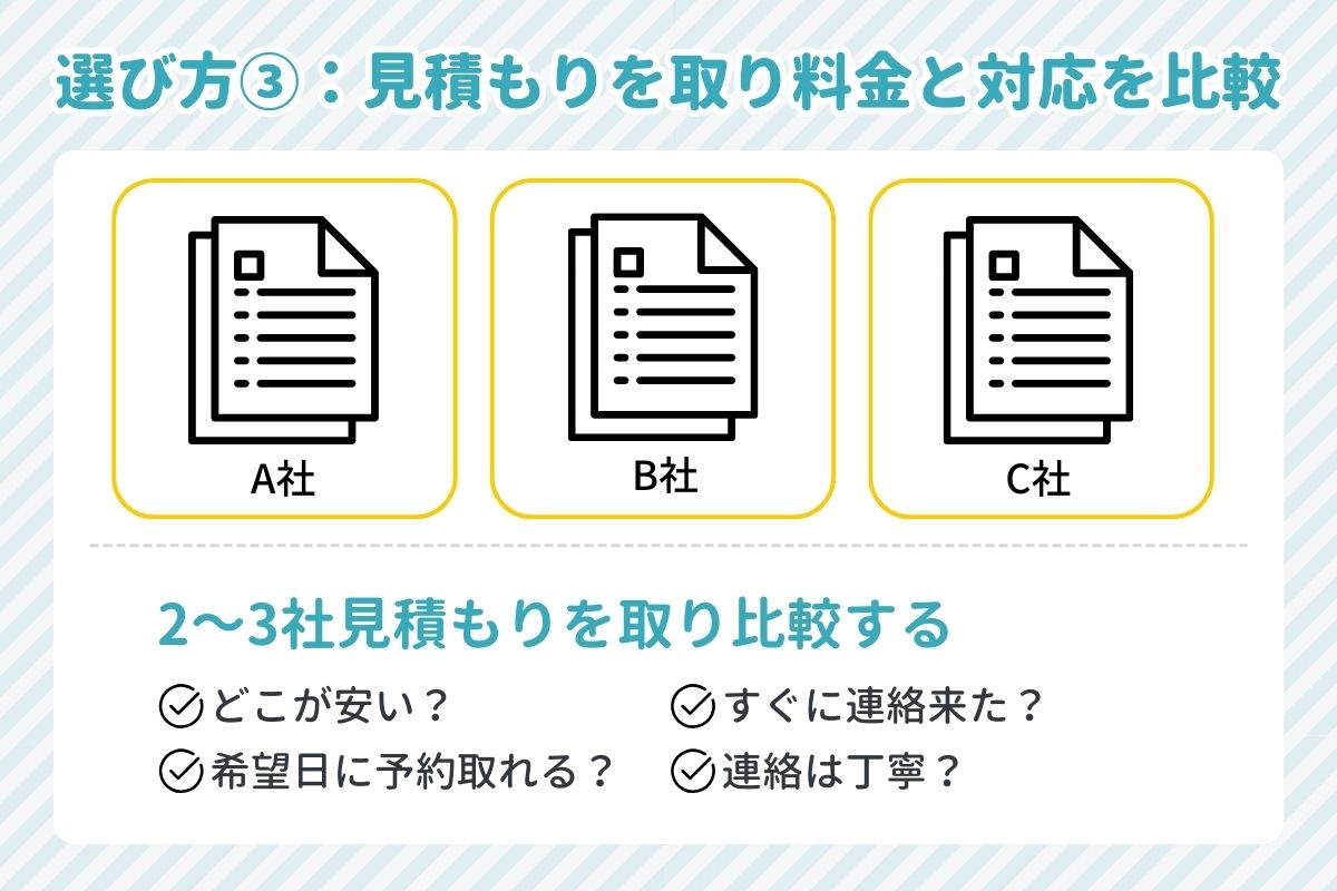 ただ、安さだけに飛びついてしまうと、質が微妙だったり、駐車場や出張費など追加料金がどんどん加算される場合もあるので、しっかり見極めが必要です。