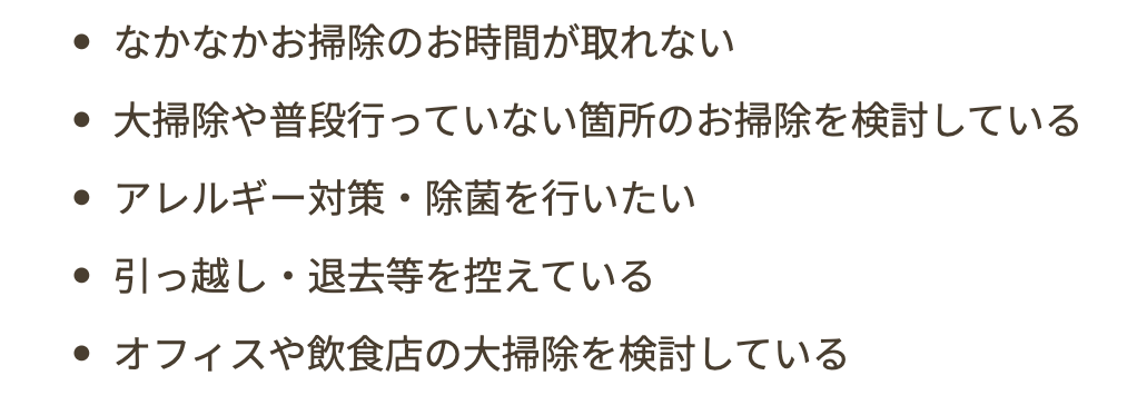 そのため、価格は明確ではありませんが、大手企業よりは全体的に安い価格で依頼できます!また、お掃除マスターの良いところは対応が柔軟なところ!早朝深夜や当日対応も受け付けています!