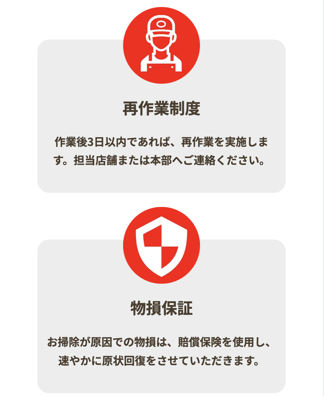 大手、個人関係なく今は損害賠償保険に加入している業者がほとんどです。万が一の補償はしっかりしているので、クリーニング後まだ日が浅い場合の不具合は、一度相談連絡を入れてみましょう!