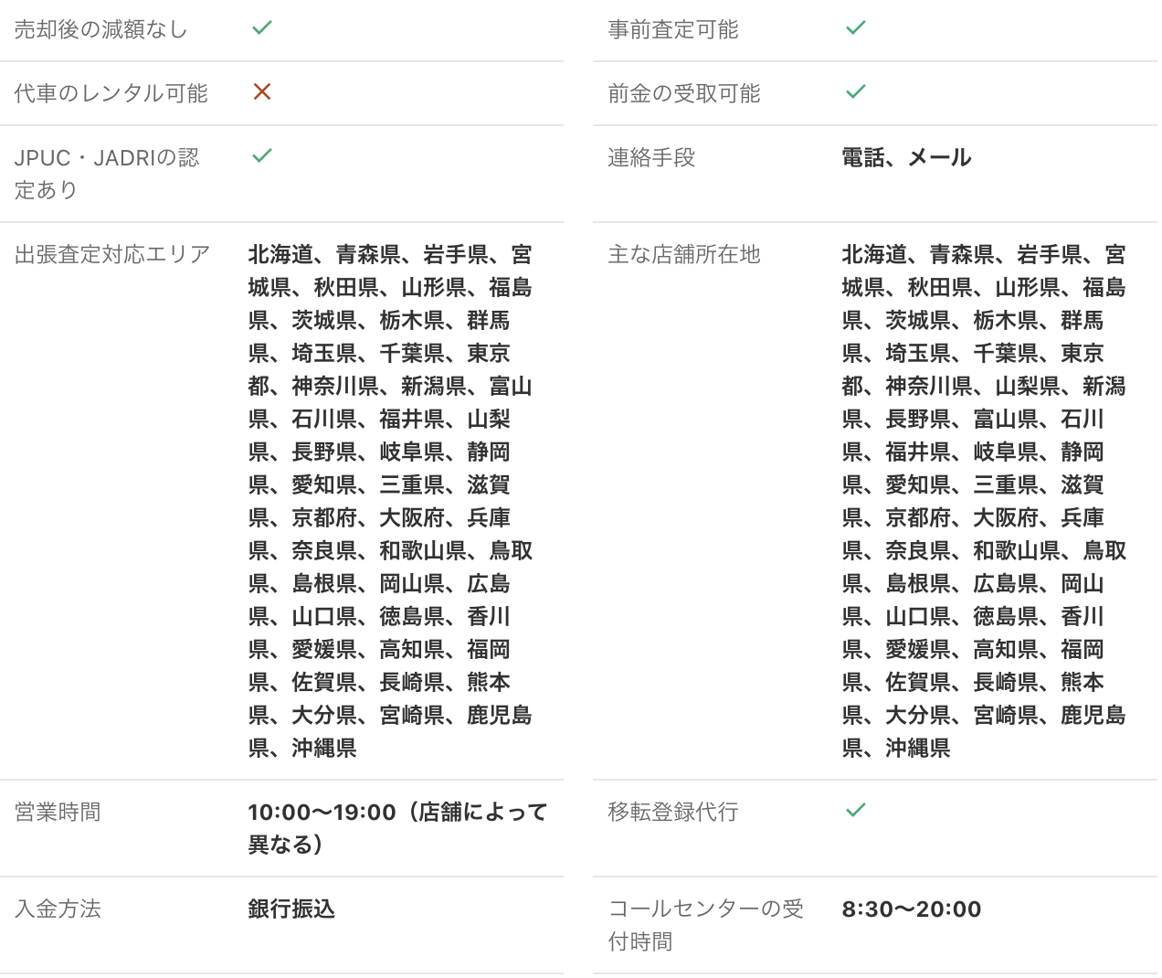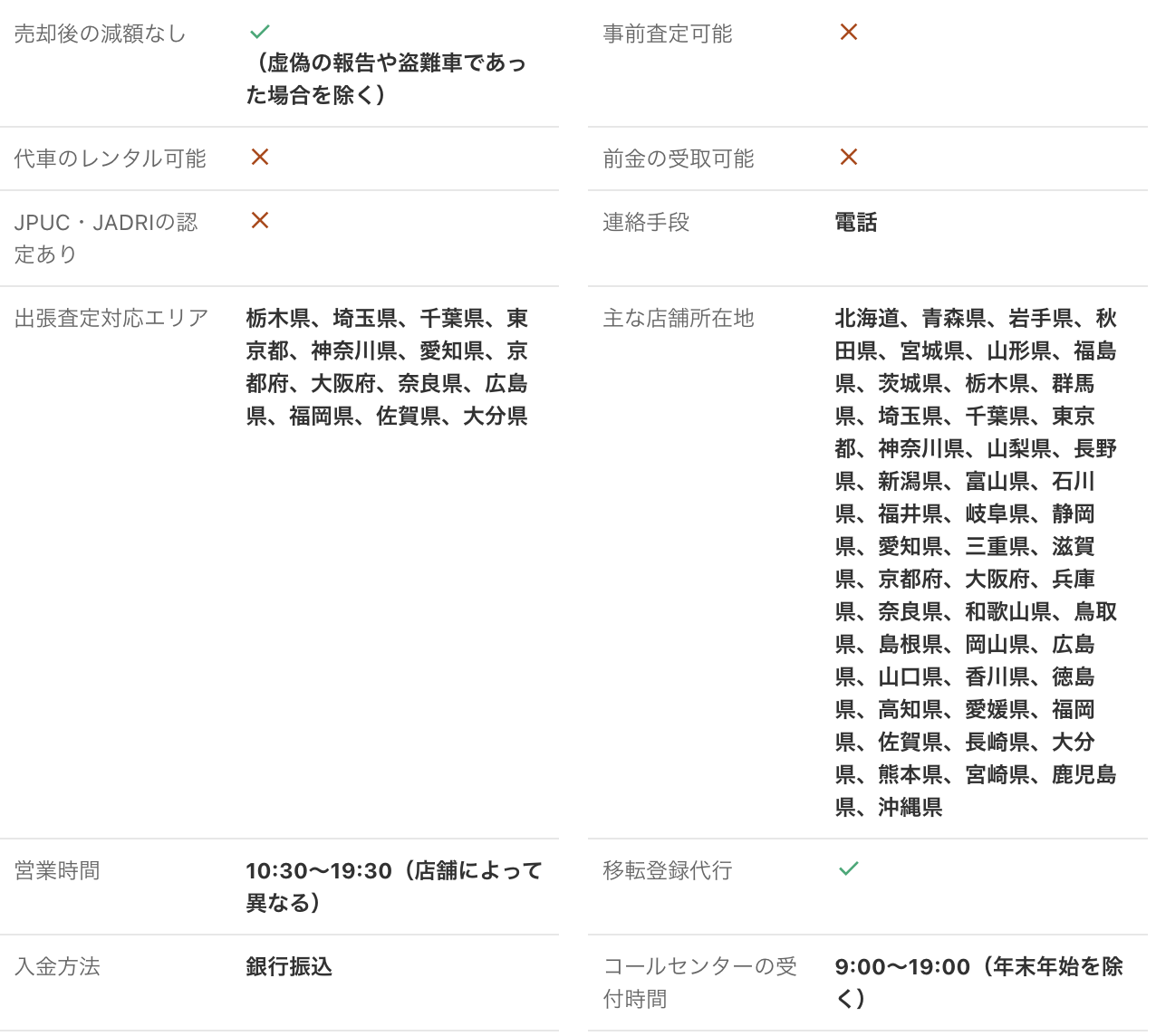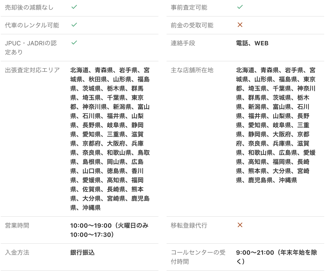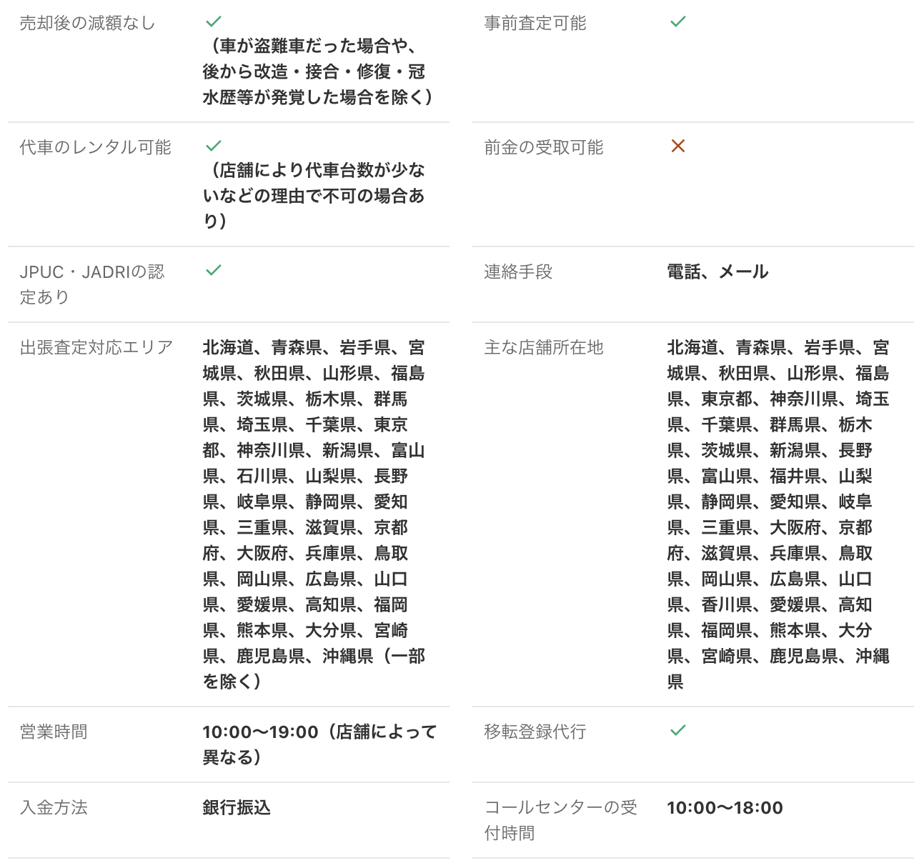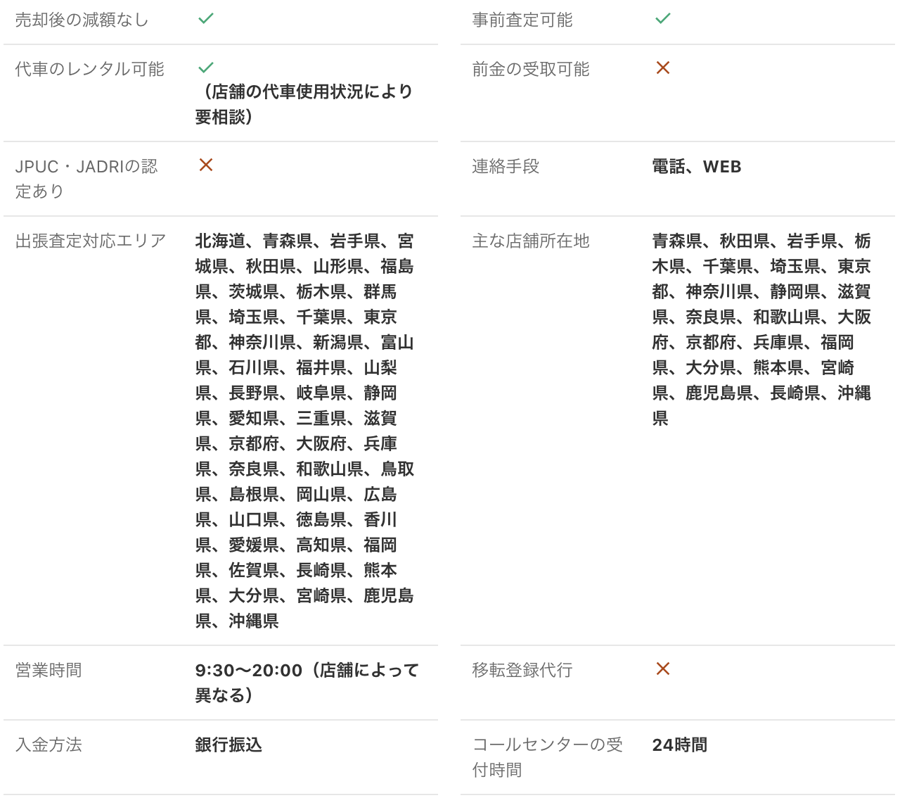 <PR> 車の買取を行っている業者は大手から地域密着型などさまざまです。買取業者によって査定方法や入金速度、対応エリアなど確認すべきポイントが数多く存在します。車の買取金額を上げるためには、希望にマッチする買取業者の選択が必要です。 車買取・中古車買取のおすすめ人気ランキング【車を売るならどこがいい?】 新車の購入や環境の変化にあわせて中古車を売るなら、「車買取業者」の利用がおすすめ。基本的に無料査定なので相見積もりすれば高額の業者を見つけられるうえ、所有権解除・名義変更といった面倒な手続きを代行してくれるのも魅力です。しかし、カーネクスト・アップル・ラビット・ガリバーなど業者が多く、「車を売るならどこがいいの?」と迷ってしまいますよね。 そこで今回は、車買取・中古車買取の選び方を解説。さらに、おすすめの車買取業者を人気ランキング形式でご紹介します。下取りとの違いや、相場より高く売るコツなども紹介しているので、ぜひ売却する際の参考にしてくださいね。 <このページはプロモーションを含みます> 買取と下取りの違いは?どっちがおすすめ? より高い買取金額を求めるなら買取、より手間を省きたいなら下取りがおすすめです。 そもそも、買取とは中古車販売・買取業者に車を売りその対価としてお金を受け取ること。一方、下取りは基本的に新車を購入することを前提に、古い車の下取り価格を新車代金から引くことで通常より安く新車を購入することを指します。 金額を重視する人は、少し手間はかかるものの買取一択。新車の購入予定がなくても利用できるうえ、中古車市場の相場価格がダイレクトに反映されるのが魅力です。他社との相見積もりがしやすいので高額査定を出せる車買取業者を見極められ、最終的な買取金額も上がりやすいでしょう。 しかし、下取りは新車購入から旧車の処分までの手続きを店側がすべて行ってくれるため、買取より圧倒的に手間がかからないのは魅力です。新車の購入を検討していて、手間と時間をかけたくない人には下取りも有力な選択肢といえるでしょう。 車を高く売るのにおすすめの時期はいつ? 自動車が比較的高く売れるシーズンは、6・7・8月です。理由は、業者間のオークションが一番活発で、車が売れやすい時期といえるから。あくまで目安ではありますが、急いで自動車を売る必要がないのなら、高く売れるシーズンにうまくあわせて売るのが賢い手ですよ。 一方、3・4月は値段がつきにくくなるので注意しましょう。3月は車買取業者の決算時期であり、年内に売れなかった車がオークションに増えるため、値がつきにくい傾向があります。 半導体不足・円安で輸入車の価格高騰はもちろん、各メーカーからの生産減での新車の納車遅れなどの影響を受けて中古車の需要増加が続いています。車種にもよりますが、中古車を売りたい人はチャンスといえるでしょう。 車買取・中古車買取の選び方 車買取・中古車買取を選ぶ際に必ずチェックしておきたい「4つのポイント」をご紹介します。 少しでも高く売りたければ、3〜5社相見積もりして最も高額な車買取業者に売ろう とにかく高く売りたい人は、3〜5社相見積もりしてから最も高い査定額が出た車買取業者に売りましょう。車種・売却するタイミングはもちろん、得意とする車種も業者によって異なるため、相見積もりで最も高く買い取れる車買取業者を見つけることが大切です。 業者ごとにそこまで差は出ないと思われるかもしれませんが、査定士が目視で修復歴を判断するため、同じ自動車の査定でも結果は異なります。なかには、一度修復歴ありと判断されてもほかの業者では修復歴なしと判断されるケースも。 3〜5社ほど見積もりを出せば十分な材料をもとに比較検討でき、適正に査定してくれる業者を見つけられるでしょう。少しでも高額査定につなげるために、オプション情報や必要書類を不足なく用意する・修復歴の申告は嘘をつかない・事前に自動車の手入れをしておくという3点を守ってくださいね。 実際に車買取業者の何社かに電話見積もりを依頼しましたが、査定最高額と最低額が約40万円もの差になることもありました。 高価買取につなげるためには、これくらいが相場という情報を持って「この金額まで行けばこの場で決めます」という状況を作り出すことが重要です。交渉の主導権を握るためにも、相場の情報は知っておくとよいでしょう。 手間なく売るには、出張査定・所有権解除代行・名義変更代行の3つがマスト 中古車買取において査定の手間を大きく左右するのは、出張査定・所有権解除代行・名義変更代行の3つに対応しているかどうかです。順番に解説していくので、ぜひ参考にしてください。 出張査定なら自宅の駐車場で完結!基本的に無料で査定してくれる 査定にかける手間を減らしたいなら、自宅にいながら対応してもらえる出張査定がぴったりです。店舗査定と違い店舗への移動時間を短
